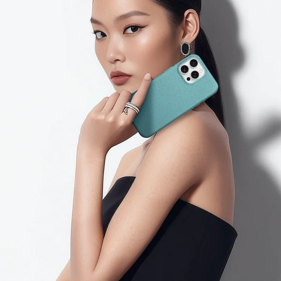 Чехол для iPhone 16 - Зернистая кожа - голубой
