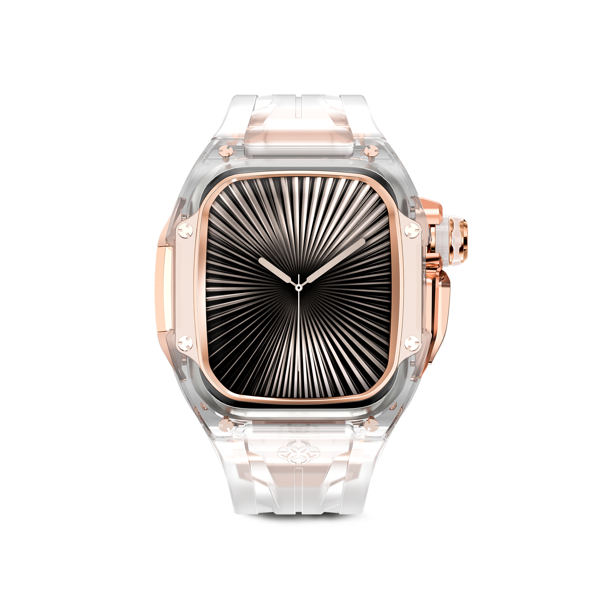 Наша новая коллекция разработана для Apple Watch серии 10. Его прозрачный дизайн с акцентированными стальными элементами покрытыми розовым золотом, подчёркивают элегантность. Корпус делает ваши часы поистине эксклюзивными.